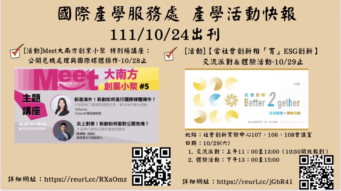 國際產學服務處 活動週報111/10/24