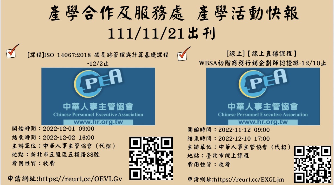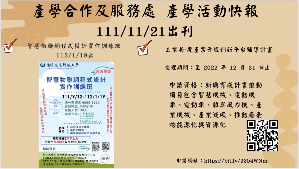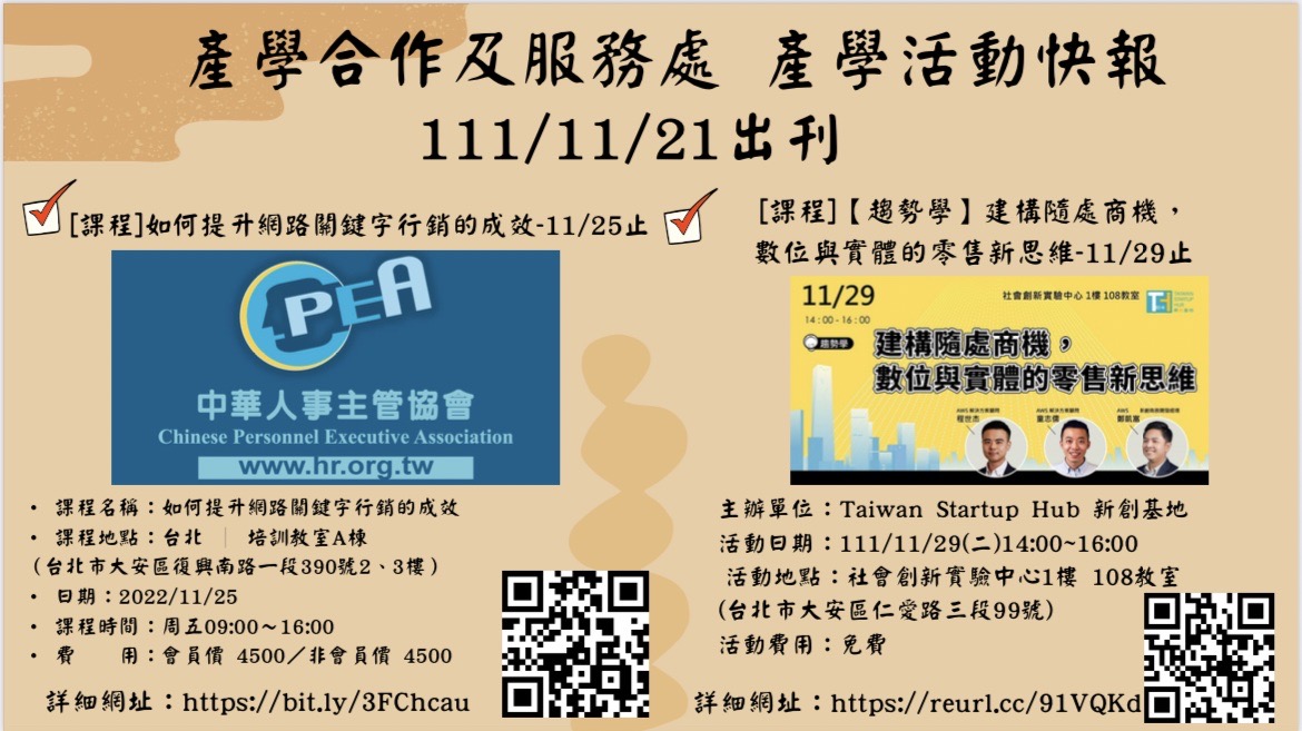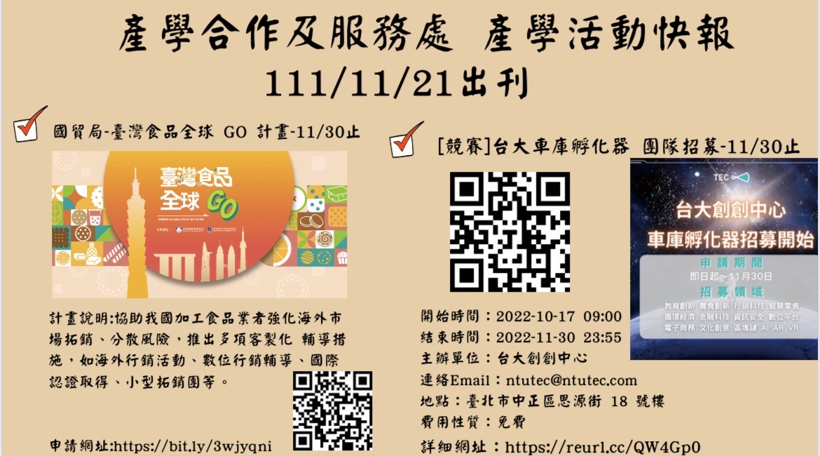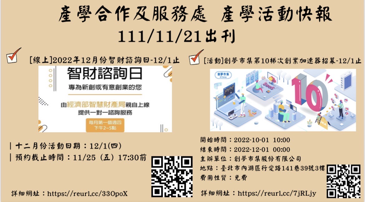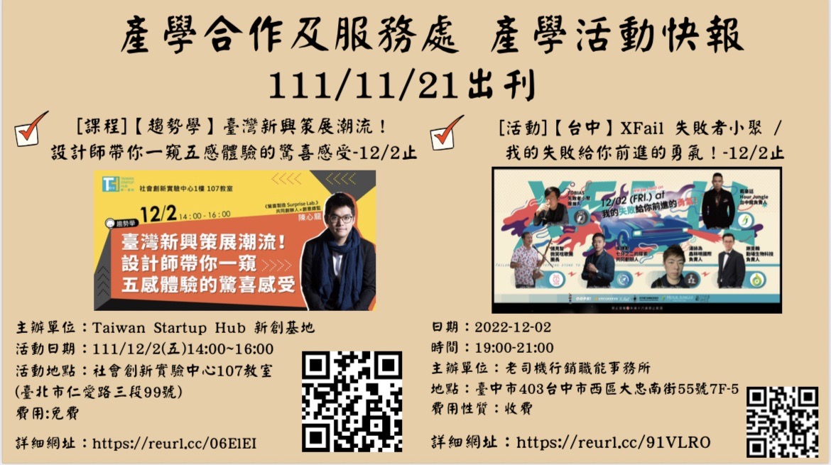 產學合作及服務處 活動週報111/11/21