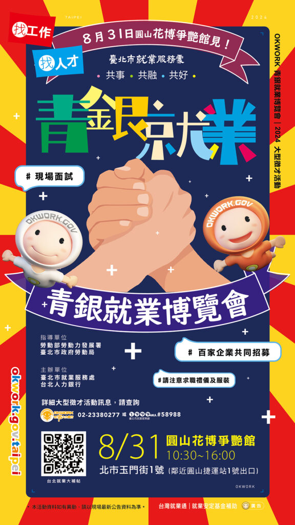 臺北市就業服務處訂於113年8月31日辦理青銀就業博覽會