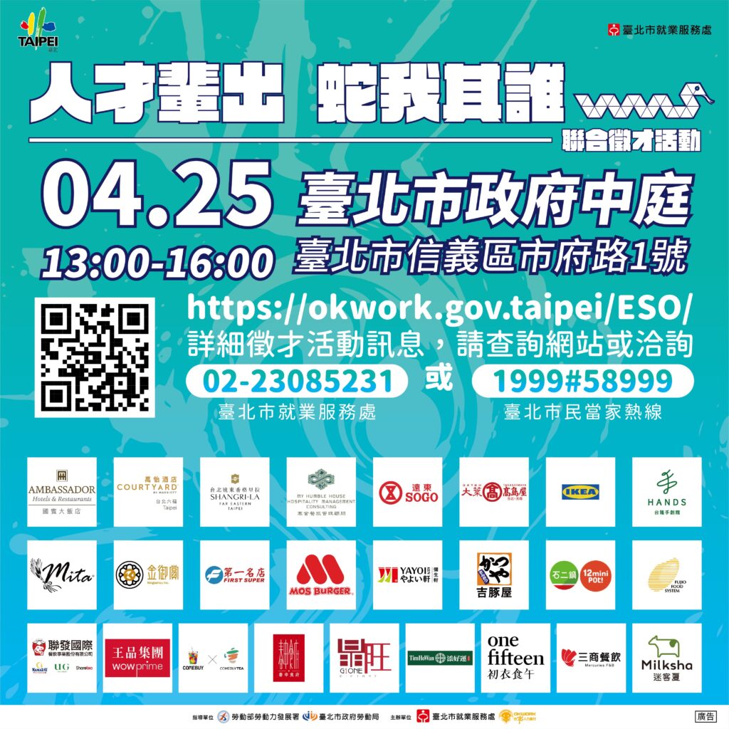 臺北市就業服務處114年4月25日「人才輩出蛇我其誰」聯合徵才活動