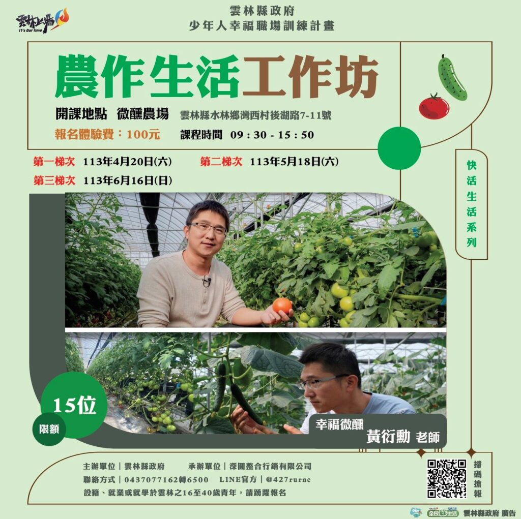 (四)參訓對象:設籍、就讀或就業於雲林縣之16至40歲青年,每一梯次以15人為限。