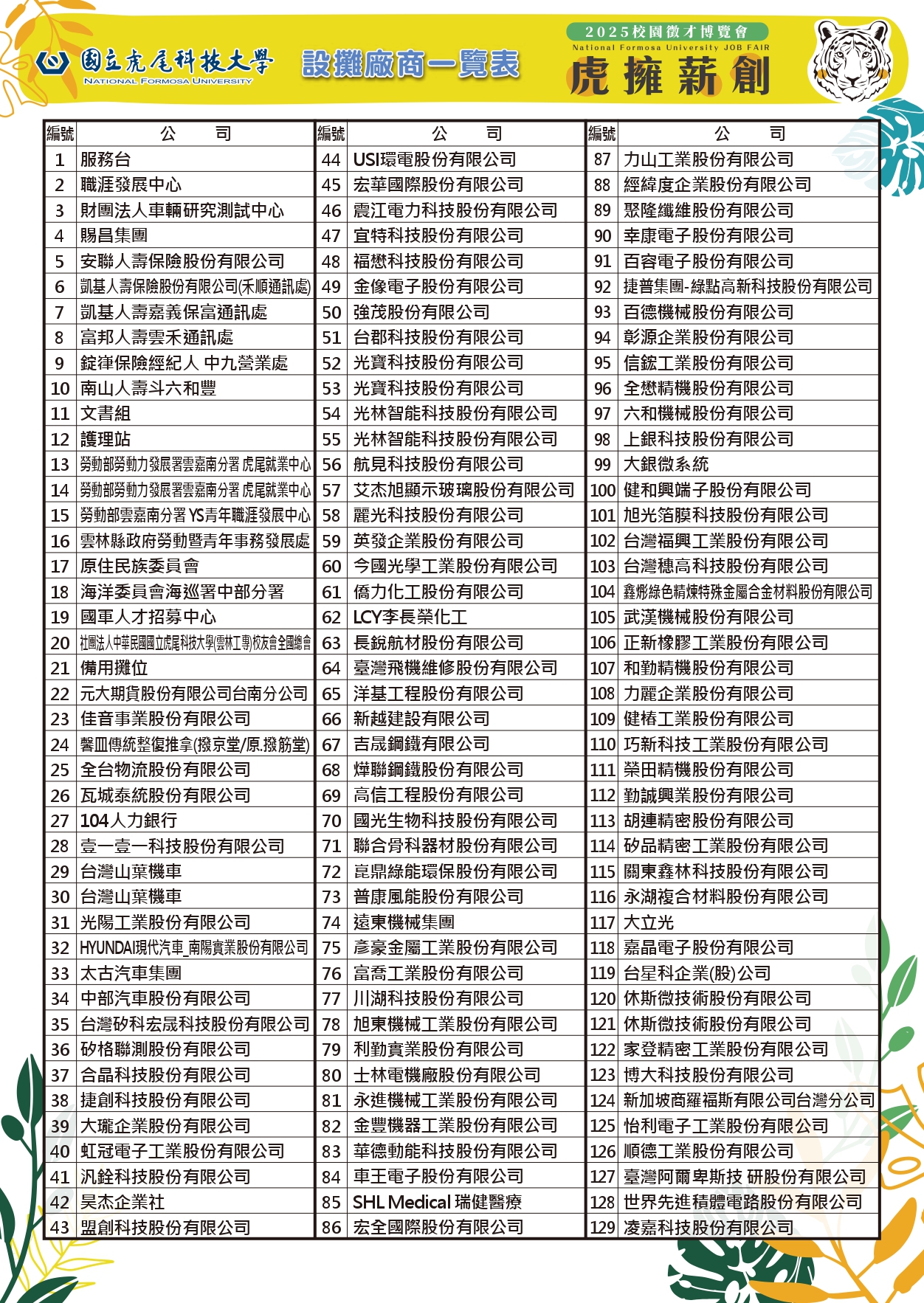 2025虎擁薪創 校園徵才博覽會-設攤廠商名單